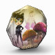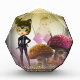 casas de enanos con la chica de gata y un marco de corazón con la foto y un poco de purpurina dorada en los dos laterales.