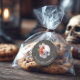 Ein gotisches und dennoch elegantes "Happy Halloween"-Aufkleber mit einem Schädel mit roten Pappeln, sanften Blumen und einem zarten Schmetterling auf einem texturierten grauen Hintergrund. Perfekt zum Versiegeln von Halloween-Party-Gefälligkeiten, zum Dekorieren von Geschenktaschen oder zum Hinzufügen einer sprichwörtlichen Touch zu saisonalen Verpackungen.