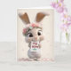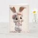 This adorable birthday card features a tiny fluffy bunny in a pink polka-dot outfit and a crown of soft blooming roses. Surrounded by drifting petals and holding a sweet “Happy Birthday” note, she delivers her message with pure, smol-bun charm. Perfect for anyone who loves cute, whimsical art and heart-melting birthday wishes.