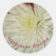 Schöne Chrysanthemum florale Aufkleber. "Happiness Bloms" mit dieser blühenden Blume aus weißer Mummi in zarten, blassgelben Farbtönen und tiefroten und hellen Gelbtönen. Ein weißes Chrysanthemum ist ein Symbol für Loyalität und engagierte Liebe. Mums jeder Farbe können Glück, Liebe, Langlebigkeit und Freude verkörpern. Der Text kann leicht personalisiert werden. Das ist eine originelle botanische Fotografie von JLW_FOTOGRAPHY