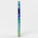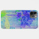 Dieses Handy-Gehäuse stellt eine digitale Collage aus mehreren Ebenen von Scans von Fotografien, Gemälden und Texturen vor. Eine Reihe blauer violetter Blume mit abstraktem Hintergrund in Lavendeltönen, Grün, lila und Blautönen.