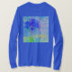 Dieser T - Shirt zeigt eine digitale Collage, die aus mehreren Scans von Fotografien, Gemälden und Texturen besteht. Eine Reihe blauer violetter Blume mit abstraktem Hintergrund in Lavendeltönen, Grün, lila und Blautönen.