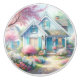 A dreamy blue cottage rests along a sunlit garden path, surrounded by blooming cherry trees and soft pastel florals. Gentle pinks, airy blues, and warm spring light create a peaceful cottagecore scene filled with charm and quiet nostalgia. The painterly watercolor style feels whimsical and storybook inspired, evoking cozy mornings, open windows, and flower filled lanes where time slows and beauty lingers. AI generated artwork.