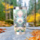 A dreamy blue cottage rests along a sunlit garden path, surrounded by blooming cherry trees and soft pastel florals. Gentle pinks, airy blues, and warm spring light create a peaceful cottagecore scene filled with charm and quiet nostalgia. The painterly watercolor style feels whimsical and storybook inspired, evoking cozy mornings, open windows, and flower filled lanes where time slows and beauty lingers. AI generated artwork.