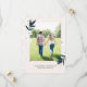 Eine hübsche, florale Save the Date Fotokarte mit wunderschönen Blumenbildern in Navy, Rot und Weiß.