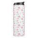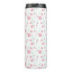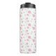 Light and cheerful floral pattern featuring pink flowers with soft yellow centers and airy mint green leaves on a clean white background.