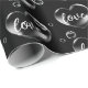 Herzförmige Blase mit weißem Liebe-Text und winzigen Blasen auf schwarzem Hintergrund für Hochzeit oder Jubiläum. Die Hintergrundfarbe kann geändert werden.