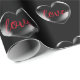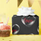 Herzförmige Blase mit rotem Liebe-Text auf schwarzem Hintergrund für Hochzeit oder Jubiläum. Die Hintergrundfarbe kann geändert werden.