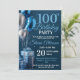 Ein stilvoller blauer Ballon und ein Geschenkdesign für eine 100. Geburtstagsfeier. Blauer und silberner Ballon mit blau-weißem Text.