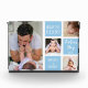 Die Geschenkidee des Ersten Vaters - Ein moderner Foto-Block mit einem Collage-Gitter aus 4 Bildern und einer Nachricht auf einem trendigen blauen Block.