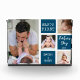 Die Geschenkidee des Ersten Vaters - Ein moderner Foto-Block mit einem Collage-Gitter aus 4 Bildern und einer Nachricht auf einem trendigen blauen Block.