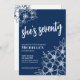 70 Navy Blue 70. Geburtstagsparty Einladung. Eine lustige, aber elegante 70. Geburtstagsfeier mit marineblau-weißen Blume für die Jungen im Herzen. Ein spielerisches Blume-Muster umrahmt eine Schriftzeichen-Typografie "sie ist siebzig", vermischt mit einem klassischeren Serif-Schriftart. Feiern Sie siebzig Jahre Leben mit diesem schönen botanischen Design. Der Spaß daran ist, dass Sie alle Farben austauschen können!! Sie können nicht nur die Hintergrundfarben und den Schriftart ändern, sondern auch die Zeilen für die Blume ändern. Erhältlich als gedruckte Einladung oder als digitale Einladung zum Herunterladen, dass Sie E-Mail senden können oder vor Ort gedruckt haben!