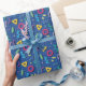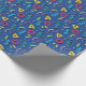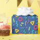 Mehrfarbiges Retro-Vintages 80er Memphis-Fashion-Muster auf blauem Hintergrund.