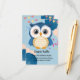 Blue Adorable Woodland Baby Owl Baby Dusche Begleitkarte