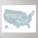 Blue Adventure erwartet US Map Kids Room Decke Poster