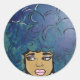 Blue Afro Ebony Girl Big Hair Runder Aufkleber