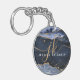 Blue Agate Geode Gold Glitzer Script Monogram Schlüsselanhänger