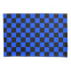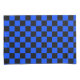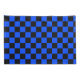A blue and black checkerboard pattern fills the image, creating a uniform, alternating grid of squares, conveying a bold and geometric feel.