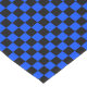 A blue and black checkerboard pattern fills the image, creating a uniform, alternating grid of squares, conveying a bold and geometric feel.