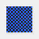 A blue and black checkerboard pattern fills the image, creating a uniform, alternating grid of squares, conveying a bold and geometric feel.