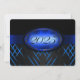 Blauer und schwarzer Abschluss mit hellen und dunkelblauen Streifen und einem blauen Band, das das Jahr des Abschlusses zeigt. Die Rückseite der Karte ist schwarz mit hellblauem Schriftart, damit die Leute die Graduierungsankündigungen ausfüllen können.