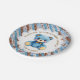 Blue and brown yarn crocheted teddy bear. it's a boy baby shower small cake paper plates. Adorable trendy theme for a sweet boy's baby shower.