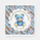 Blue and brown yarn crocheted teddy bear. it's a boy baby shower paper napkins. Adorable trendy theme for a sweet boy's baby shower.