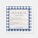 Fügen Sie Ihrer Hochzeit eine lustige und persönliche Touch mit dieser individuell gestalteten "Fun Facts"-Serviette hinzu, die mit einem zauberhaften blau-cremefarbenen Retro-Schachbrettmuster versehen ist. Lass deine Gäste auf süßen, sonderbaren oder überraschenden Fakten über das Paar ein - ideal, um bei Cocktail oder am Empfang-Tisch Konversationen zu entfachen. 💙 cremefarbener Hintergrund mit fett blauen Schachbrettern 📝 "Fun Facts" mit Platz für Ihre individuellen Trivien 👰 mit Paarnamen und Datum 🎉 Einzigartiges und interaktives Hochzeitsdetails Ihre Gäste werden 💬 Ideal für Hochzeiten, Proben oder Brautpartys feiern Ihre Liebe auf stilvolle, interaktive Weise - denn jedes kleine Detail zählt!