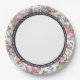 Blauer Marmor Grenze Rosa Blumengarten Tee Party Papier Teller