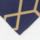 Diese Fleecedecke hat ein Art Deko Design von Dreiecken und Diamanten, die wie Kleider in Blau und Gold aussehen.