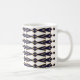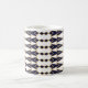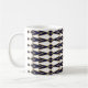 Diese Tasse hat ein Art Deko-Design von Dreiecken und Diamanten, die wie Kleider in blau und gold aussehen.