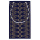 Diese Geschenktasche hat einen kunstvollen Deko-Design von Dreiecken und Diamanten, die wie Kleider in blau und gold aussehen.