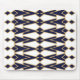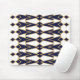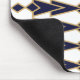 Dieses Mauspad hat ein Deko-Design aus Dreiecken und Diamanten, die wie Kleider in Blau und Gold aussehen.