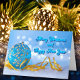 Feiern Sie die Saison mit einer Touch von Eleganz! Die wunderschöne Weihnachtskarte mit ihrem prächtigen blauen Hintergrund, dem vergoldeten Dekor und dem festlichen Band, die den Zauber und die Wärme der Feiertage einfangen. Es ist perfekt für Kunden, Freunde oder Familien geeignet und beinhaltet eine herzliche Begrüßung im Inneren, um Frieden, Freude und Dankbarkeit zu verbreiten. Ein schöner Weg, um herzliche Wünsche für ein frohes Weihnachtsfest und ein erfolgreiches Neues Jahr zu senden.