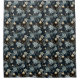 This blue and gold Christmas ornaments and poinsettias pattern is perfect for a holiday aesthetic seasonal home decor shower curtain. AI assisted graphic purchased with commercial use. Artwork: DreamCafeArt