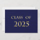Klasse 2025 Karte mit blauer Textur für den Hintergrund und Gold für den Namen. Die Rückseite ist eine blaue Textur mit goldener Schrift für die Graduierungsankündigungen.