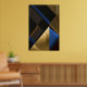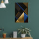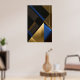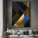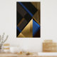 Elevate your projects with this luxury geometric art. The composition combines deep navy blue tones with metallic gold and black, creating a sophisticated and corporate look. Diagonal lines and overlapping angular shapes generate depth and movement, while the glossy finish adds premium elegance. Ideal for annual report covers, financial branding, corporate stationery, and modern office decor. Convey confidence, success, and good taste with this high-end design that impresses at first sight.
