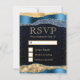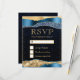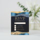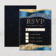 Blue and Gold Glam Tears Bokeh Wedding RSVP Karte