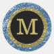 Blue and Gold Glitzer Mit Monogramm Runder Aufkleber