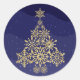 Blue and Gold Snowflake Tree Weihnachtssticker Runder Aufkleber