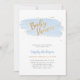 Blauer und goldfarbener Babydusche lädt zu einem Spaßschwanz mit blauen Aquarellen und goldenen Imitaten. Fügen Sie Familiennamen wie Mutter, Vater, großer Bruder, große Schwester hinzu. In der Auflistung finden Sie passende Artikel.