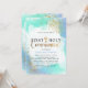 Modernes Aquarellgold erste Einladung der Heiligen Kommunion mit blauem Aquarellhintergrund und Goldkonfetti, Heiliger Kommunion Schrift in trendiger Schrift und Details.