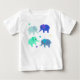 Niedliches Baby Boy's Tee mit bezaubernden Grafiken von blau, türkis und minzgrün gemusterten Elefanten und farbenfrohen Herzen. Anpassen, um eigenen Text hinzuzufügen.