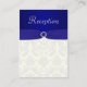 ****BITTE BEACHTEN SIE, dass das Band und die Juwelen gedruckte Bilder sind und nicht real sind. Diese blaue und elfenbeinige Damast-Empfang-Karte passt zu der Hochzeitseinladung und anderen unten gezeigten Gegenständen.