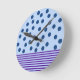 Die Uhr "Zeit für Spaß" ist hellblau mit blauen Polka-Punkten und lila Streifen. Spaß!