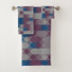 blue and mauve geometric pattern badhandtuch set