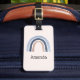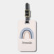 Ein Gepäckanhänger mit einem niedlichen und skurrilen Regenbogen. Blau und pfirsichfarben.