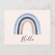 Eine Postkarte mit einem niedlichen und skurrilen Regenbogen. Blau und pfirsichfarben.
