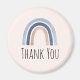 Danke Magnet mit einem niedlichen und skurrilen Regenbogen. Blau und pfirsichfarben.