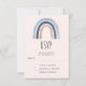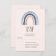 RSVP-Karte mit einem niedlichen und skurrilen Regenbogen. Blau und Pfirsichfarben.